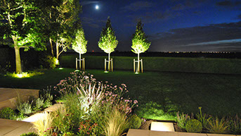 Box balls which echo the formality of the existing hedges, are surrounded by lush grass and perennial planting, softening the edges of the hard landscaping. The planting becomes less formal as it moves out into the garden towards the countryside.