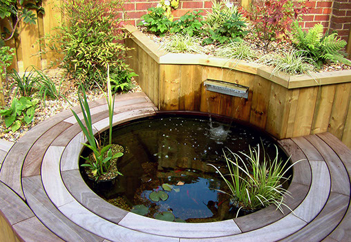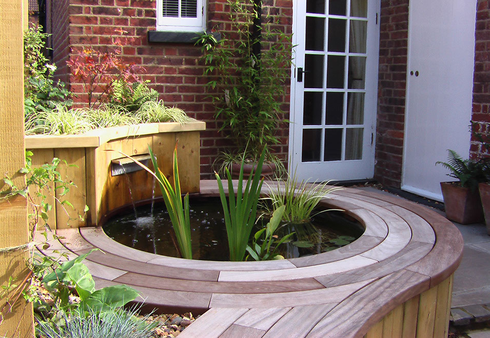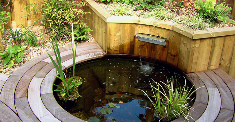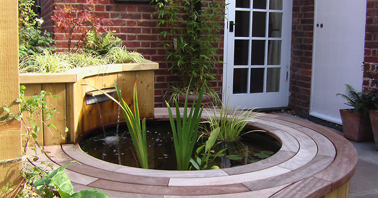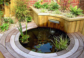 A simple slot water feature helped to muffle the sound of traffic on the nearby main road as well as providing aerated water for the fish.