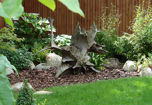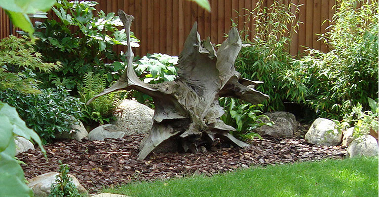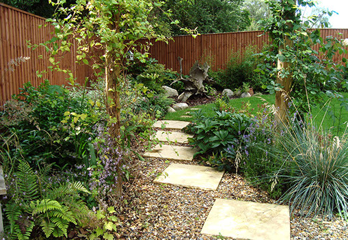 A further arch prompts discovery of the fernery with its inverted tree stump for the boys to climb on. As well as being an ideal insect habitat, the stump creates a curious focal point.